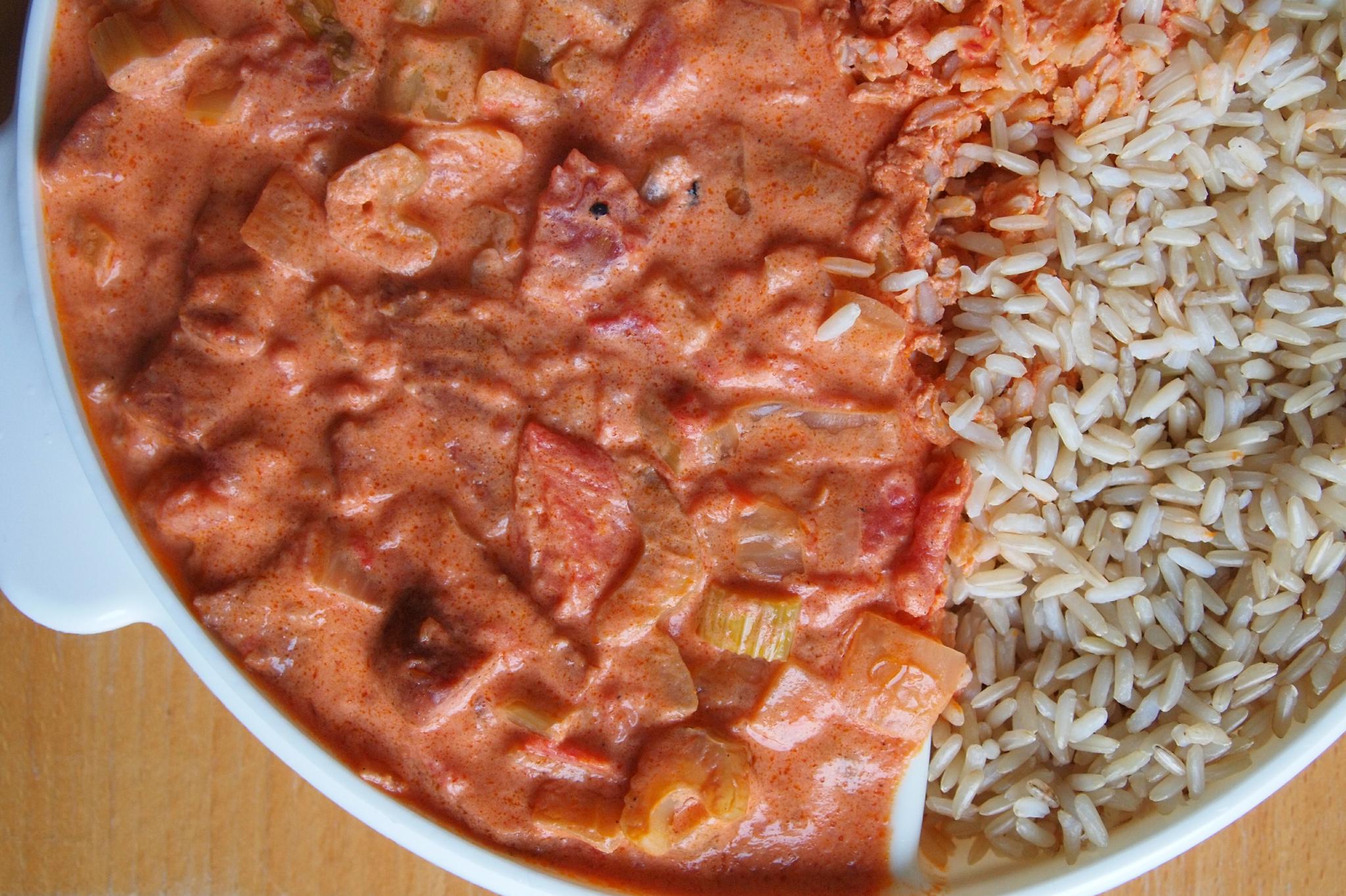 De bereiding is zeer simpel. Zet water voor de rijst op en kook de rijst goed gaar. Snij cervelaat in stukjes en bak tot het vet eruit is. Voeg gesneden ui toe en 'frituur' tot de ui goed gaar is. Voeg de groenten, gesneden, toe en bak nog maar even wat meer. Vervolgens de tomaten en creme fraiche erbij, op smaak brengen met wat zout en natuurlijk peper. Even goed doorgaren en apart met de rijst serveren.