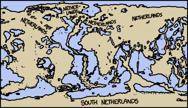 Was het maar waar, dit wereldrijk Nederland. Helaas regeren we de golven pas zodra deze weg zijn volgens XKCD.